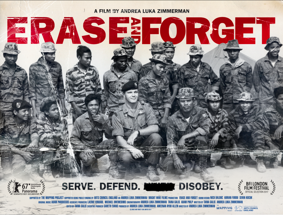 | Related Websites: | http://www.eraseandforget.com, http://www.fugitiveimages.org.uk/projects/erase-and-forget/, https://lux.org.uk/luxplayer/erase-and-forget-andrea-luka-zimmerman-2018, https://www.youtube.com/watch?v=z9A3AnDoZaA, https://www.youtube.com/watch?v=7tE884QU8gA&t=10s, https://www.mixcloud.com/Resonance/playlists/constructive-forces/, https://www.youtube.com/watch?v=TIh1i-2WZb8, https://www.imdb.com/title/tt6075734/, https://www.bifa.film/news/new-talent-longlists-2017/, https://twitter.com/eraseforget?lang=en, https://www.imdb.com/title/tt6075734/awards?ref_=tt_awd, https://www.youtube.com/watch?v=9-_UlpvWdMk, https://cineuropa.org/en/video/322775/, https://cineuropa.org/en/video/322778/, https://cineuropa.org/en/video/322776/rdid/321946/, https://www.youtube.com/watch?v=eALunnUas6Q, https://www.cineuropa.org/en/video/322777/rdid/321946/, https://www.youtube.com/watch?v=A8l0tTCJmMw, https://www.youtube.com/watch?v=hFnZOZC2w1Q, https://www.theguardian.com/film/2017/feb/13/erase-and-forget-documentary-bo-gritz, http://www.anothergaze.com/the-discomfort-of-recognition-andrea-luka-zimmermans-erase-and-forget-2017-review/, https://www.theguardian.com/film/2018/mar/02/erase-and-forget-review-andrea-luka-zimmerman-bo-gritz, https://frieze.com/article/second-looks, http://cinesthesiac.blogspot.com/2018/02/the-expendables-erase-and-forget.html, http://www.documentfilmfestival.org/interview-andrea-luka-zimmerman-erase-and-forget/, https://lux.org.uk/writing/erase-forget-interview, http://weekend.gazeta.pl/weekend/1,152121,21652212,james-bo-gritz-pierwowzor-rambo-i-jego-prawdziwa-historia.html, https://lwlies.com/reviews/erase-and-forget/, http://eraseandforget.com/wp-content/uploads/2018/02/Erase-and-Forget-SS-review.pdf, https://www.empireonline.com/movies/erase-forget/review/, http://www.springsessions.org/happenings/announcement244?edition=edition2019-en, https://www.events.ps/en/Events/1086/Screening-and-discussion-with-the-director-of-Erase--Forget |