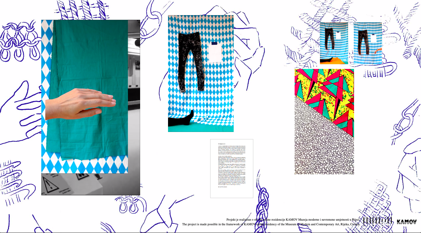 | Description: | Website - with visual material, video/audio and text For the artwork Cut Out Ben Cain and Tina Gverović created a specific graphic interface at which they uploaded text, drawings, photographs and videos available on a specially designed webpage: https://mmsu.hr/kamov-online/ . In order to fully experience the artwork please click on the windows to enlarge and run the content. If It Happens Let It Cut out, cut up, cut back, jump cuts. We are not a thing – that’s a pretty inane statement? We know that bodies shouldn’t be treated as raw material, but they often are. The bodies, or body-parts seen in these images and videos might come across as uncanny raw material that’s aimlessly doing its own thing, equally they might be cut-off things incessantly labouring even without having any clearly defined work to do or objective in mind. The intentions involved in combining moving-image parts of people next to photos of fabric next to video clips of machinery next to spoken or written text next to… aren’t necessarily fully resolved; and although we might be thinking about how bodies might explore and enjoy their own possibilities of movement (however micro), and how they might be co-opted, unwilling participants in other people’s narratives and work regimes, packaged and promoted… we’re not sure yet if or how any of that will be tangible in what we make during the residency. Ben Cain/Tina Gverović |