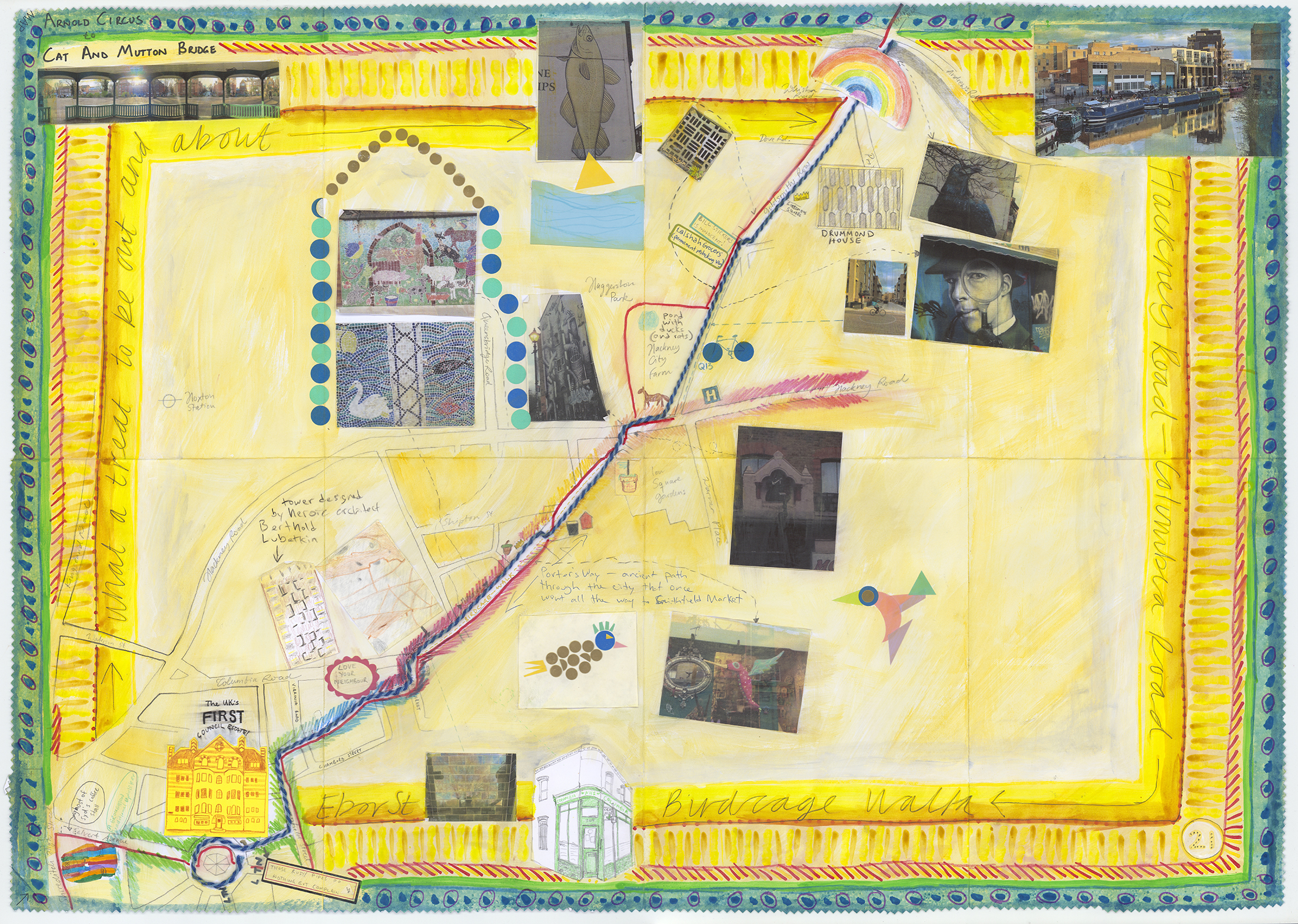 | Description: | This collaborative illustration project was designed in response to the Covid-19 pandemic. In the context of increased levels of anxiety, isolation, restrictions and the near-total digitisation of everyday life, I was keen to develop a project that foregrounded materiality, embodiment, and being-in-common. In this project 24 East London residents walked on various shared routes over a period of six months. It resulted in five physical, collaborative maps of different areas of Hackney, Tower Hamlets and Islington. Each map was generated by four to five participants who walked along the same route at different times, annotating their thoughts, ideas and observations on a shared A1-sized sheet of paper that was passed from one walker to the next. The project has now been donated to the Hackney Archives. |
