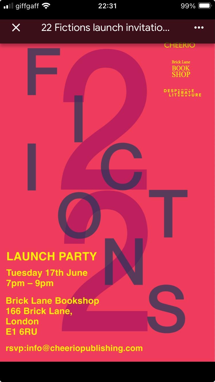 | Description: | Eleven Stories Salon -- 22 Fictions: New writing from Desperate Literature & Brick Lane Bookshop 22 Fictions is a curated selection drawn from the first five years of two indie bookseller-run projects – Madrid's Desperate Literature Short Fiction Prize and London's Brick Lane Bookshop Short Story Prize. |