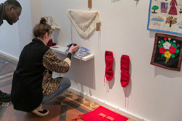 | Description: | The exhibition 'Traces: Stories of Migration' presents the outcomes of a community-led project led by Professor Lucy Orta, focusing on the lived experiences of people who have migrated to East London. Situated within the historical, cultural, and socio-political contexts of migration in East London, the project draws attention to the area’s longstanding relationship with the textile industry and the contributions of migrant communities. Between 2020 and 2023, a total of eighty-seven people from thirty-seven different migrant heritages joined a seven-week workshop programme to share their migration stories and express themselves through textile-making. Developed in collaboration with the Portal Centre for Social Impact (London College of Fashion), workshops were held in local community centres—Poplar Works, Bromley by Bow Centre, Rosetta Arts and The Lab E20—in the London boroughs of Newham and Tower Hamlets. Sessions included oral storytelling in group settings, providing a compassionate space for both joyful and traumatic migration experiences to be recounted. Participants were encouraged to imagine the shapes, colours, textures, and smells associated with their migration journeys. The shared experiences that emerged from these activities helped foster a sense of empathy and belonging, transcending emotional and cultural boundaries. Alongside storytelling, peer-to-peer textile crafting was explored, enabling participants to share textile heritages and skills, including embroidery, appliqué, photo transfer, and block printing. These tactile workshops resulted in the creation of personal ‘Story Cloths’—textile artefacts that represent individual migration stories. Alongside the creation of the ‘Story Cloths’, the method of allied storytelling was employed by Lucy Orta to retell individual stories through her own responsive practice. Through this process, Lucy produced a large textile portrait of each person (90 × 90 × 4 cm), replicating techniques explored during the workshops to depict their likeness and migration experiences. These portraits were continually reworked with the input of the participants. The exhibition 'Traces: Stories of Migration centres on migrant-situated knowledge and experience, through which two narratives are woven together: seventy-seven extraordinarily diverse ‘Story Cloths’ and forty-seven individual portraits forming Lucy’s 'Community Portrait Gallery'. Working within the curatorial framework of organising public space, the exhibitions held in East London at the Nunnery Gallery and the UAL East Bank Wolfson Gallery were conceived as spaces for debate and encounters across multiple platforms. The ‘Story Cloths’ presented compelling examples of creative practice through the participants’ own voices, while Lucy’s 'Community Portrait Gallery' provided a mirror to the collective experience, where stories take on human form. Furthermore, by sharing the lived experiences of migrants—their struggles, resilience, and aspirations—the project makes visible the structural forces that shape displacement and marginalisation. In this way, textile crafting and storytelling function both as method and as a form of political resistance, confronting prejudice and cultivating understanding. Alongside the exhibition at the Nunnery Gallery, a public programme was co-created and co-delivered with project participants. A book of poetry, 'Needle Around Her Neck' (2023), was written by author Natalie Abbi Ezzi based on participants’ testimonials; a documentary film by David Bickerstaff was presented; and the ;Traces: Stories of Migration' exhibition catalogue, with critical essays, provided further opportunities to explore the connections between storytelling, migration, identity, and textile-based practices. |