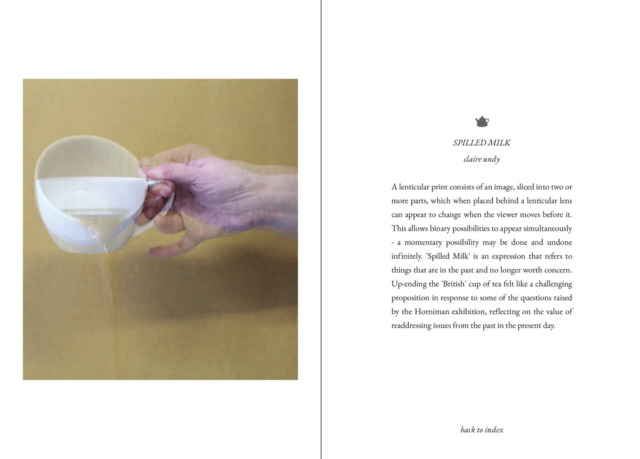 | Description: | Contributions to the publication: 'Spill the Tea' - a workshop devised and produced in collaboration with Smriti Mehra. Over its first year the research activity of the Horniman and University of the Arts London Museum Arts Fellowship has drawn together a plurality of practices which have unpacked tea as a material component in relation to individual and specific locations and practices.This activity is drawn together in a physical publication which will be given as a gift and this freely downloadable digital version which includes more extensive texts, images and documentation. |