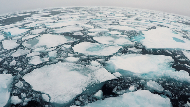 | Description: | In the video work 82°06'00.0"N 9°43'13.0"E we sail through the Arctic pack ice as the sea ice swells taking us on a journey along the edge of the horizon. |