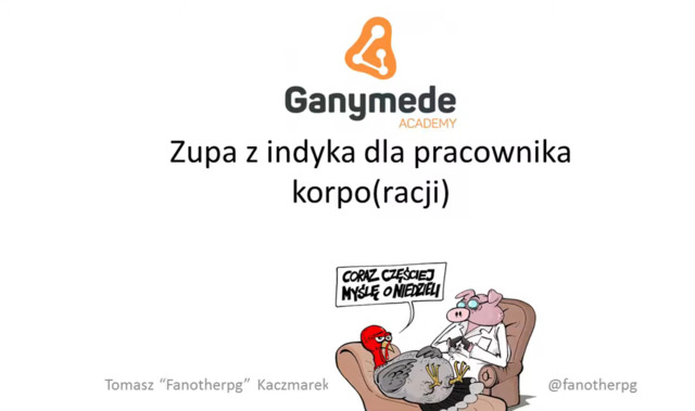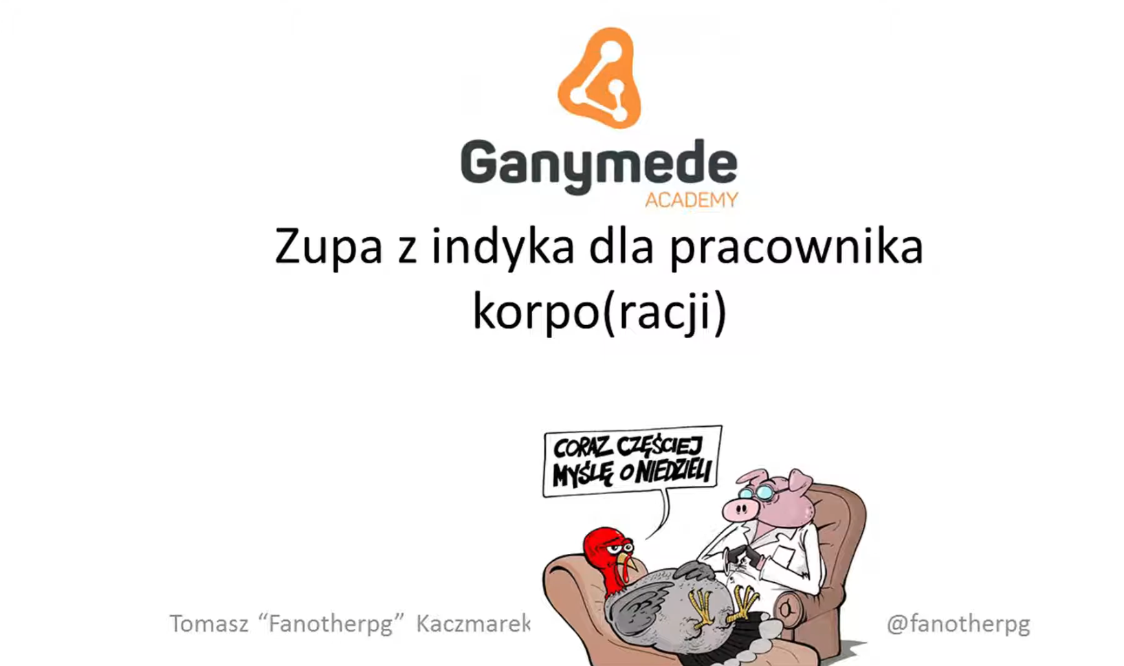 Kaczmarek, Thom (2015) Indie soup for corpo(right) worker [Zupa z indyka dla pracownika korpo(racji)]. In: Lecture, 15 Oct 2015, GameDesire Sp. z o.o., Kraków, Poland.