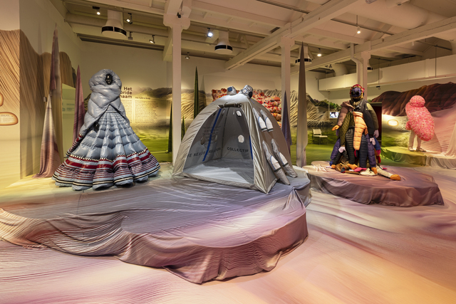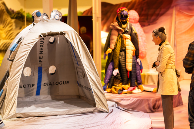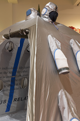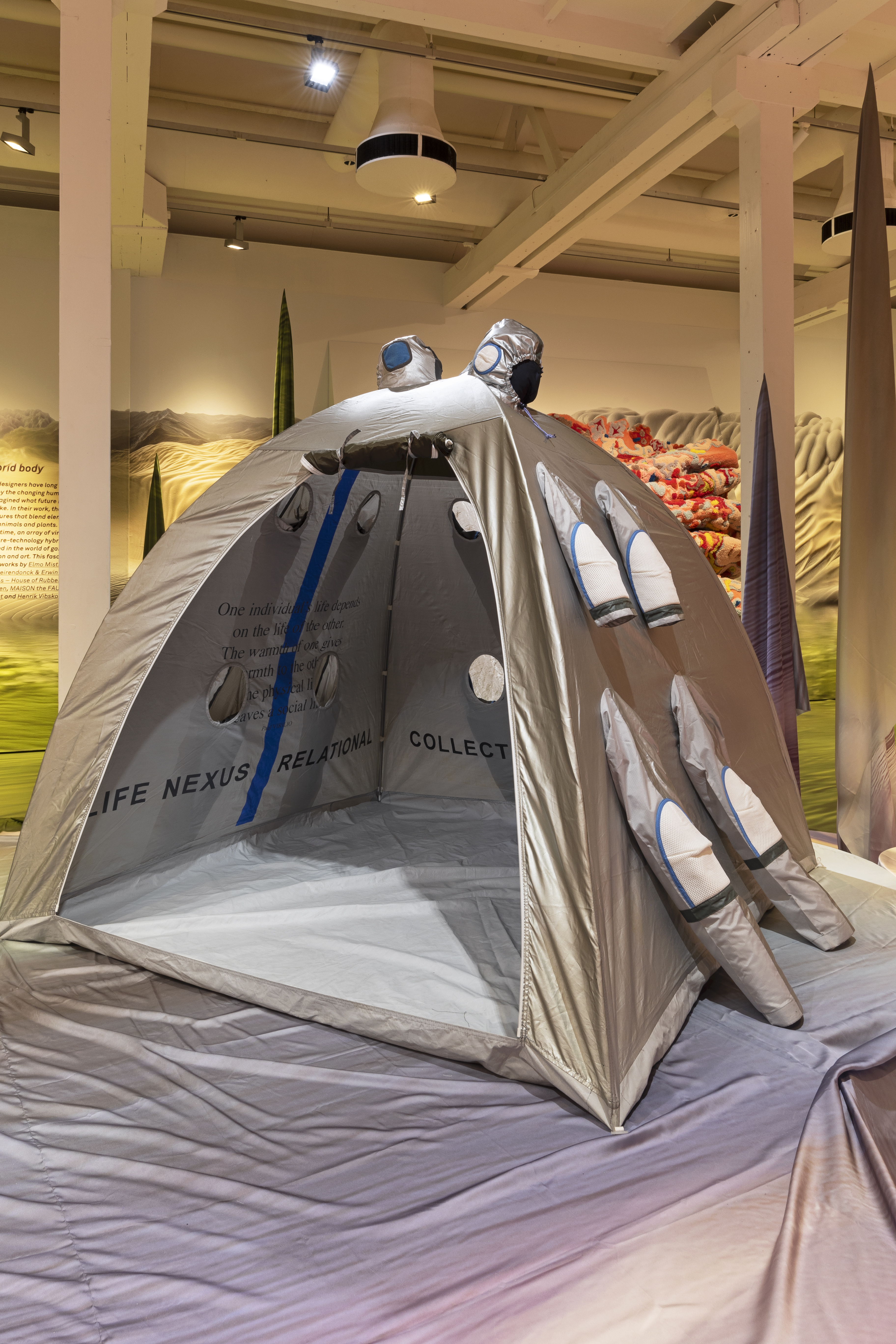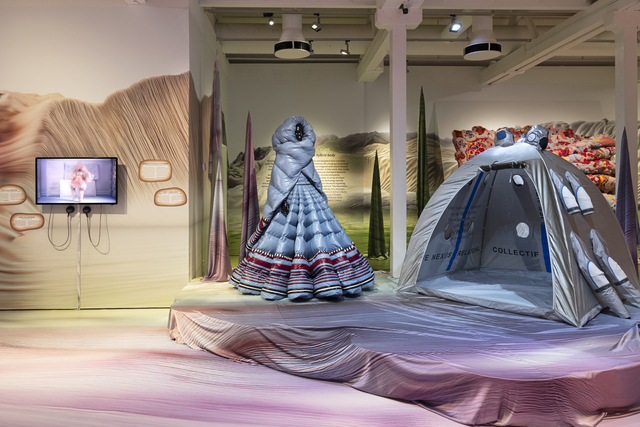 | Description: | This exhibition presents examples of fashion and visual art practice that reflects on contemporary views of the body, beauty ideals and identity and inspired by global discussions around cosmetic surgery, cultural identity, gender roles and the impact of technology on our self-image. Artworks on display push the boundaries of the body exploring how forms shape identity and how dressing is assembled in the real world but also virtually with the help of artificial intelligence and digital fashion. Presented is 'Body Architecture - Collective Wear' a sculpture by Lucy Orta which interrogates the body as a communal entity expressed through wearable shelter-like forms with multiple arm and leg extensions. |
