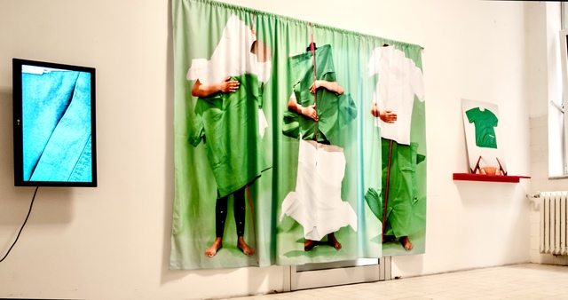 | Material/Media: | mixed media (print on fabric, photographic print on board, written text, video animation) | ||||||