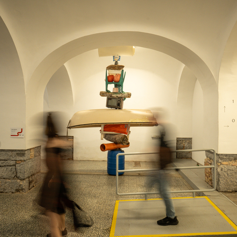 | Description: | Strata: Rising Levels is part of an ongoing series that explores the concept of time as non-linear—where events and geological changes do not unfold sequentially, but rather accumulate gradually and concurrently. The work challenges the conventional perception of time as a straight line, instead imagining it as a compacted mass in which events and materials coexist, layered atop one another. Some pieces in the series take the form of vertically stretched pillar-like structures composed of everyday objects—TVs, bricks, car doors, boats, wood, pipes, tents—assembled into towering compositions. Other works resemble archaeological digs or excavation sites, stretching out horizontally like stratified landscapes. Here, the ground beneath our feet is not a single contemporary moment but a dense palimpsest, supported and shaped by countless overlapping events, bodies, buildings, and materials from various times. Sometimes the weight of amassed material is overwhelming and sometimes memories in the form of materials float more effortlessly between dark/deep space/time and seemingly more gravity-less top layers or fleeting surfaces. |