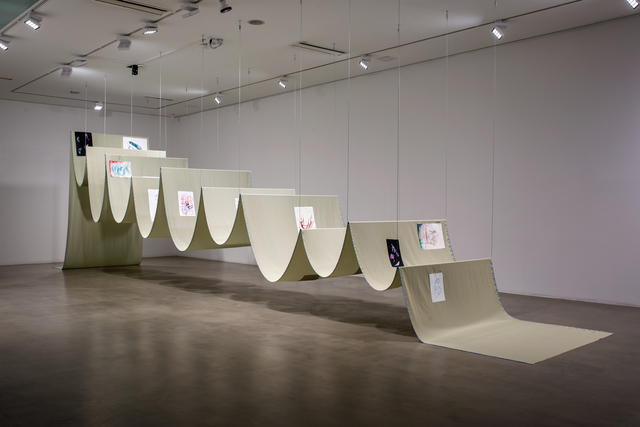 | Material/Media: | Installation with textile and print on cotton fabric |