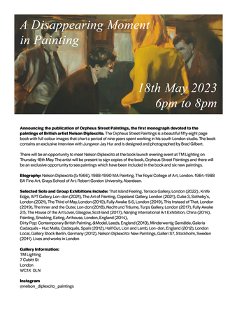 Gilbert, Brad and Hur, Jungwon Jay and Diplexcito, Nelson (2023) Nelson Diplexcito: The Orpheus Street Paintings. Brad Gilbert & Michael Caplan.