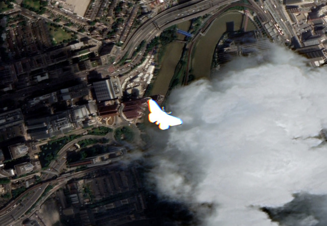 (moth) in relay flying over the Global Switch East Data Center at East India Docklands, London (Download)