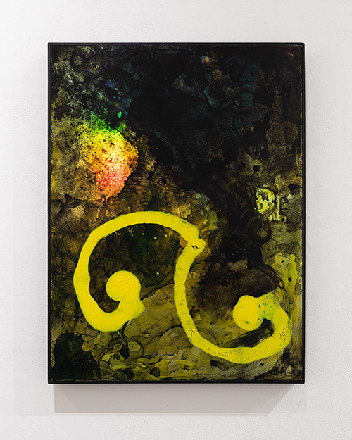 | Description: | Sarah Kate Wilson. ‘Crypsis’, 2022 Acrylic, wax, water-soluble pastel, holographic card (on panel). 50.5 x 40.5 cm. 53 x 43 x 4.7 cm framed What is it that makes the hairs on the back of our necks stand up? The artists here share an interest in imaging. Sifting, gouging and misting produce hallucinations and daydreams, echoes, sleep states, visions and spells - a limitless succession of universes. The surfaces are charged with action - elements emerge to be felt, rather than grasped, by the viewer. The tussle between colours, forms, gestures and materials, makes our tongues itch and seeds goosebumps. We repress a shudder, the imagery sticking to our eyelids like afterburn. Taylor explains his work “…is concerned with an emergent space; a swilling and churning dual sphere of production and consumption where all that enters is incessantly gnawed, singed and regurgitated”. Wilson’s work is crystallised around subjects; animal mimicry, ancestral knowledge and magical practices, which she expresses by weaving together images, symbols and events found in the natural world - Fibonacci spirals, animal camouflage and atmospheric phenomena. The titles of Moloney’s paintings ‘Shipwreck’, ‘Sailing to the middle’ and ‘Levitating’, coupled with images of hieroglyphics, castles, and children, allude to journeys, confusion, memories and daydreams anchored in the real world. In searching for the ineffable, each artist puts painting through its paces. Moloney, working with acrylic and watercolour on canvas, traps images under painterly washes - misty rainbow-coloured veils that momentarily occlude what lies beneath. Taylor loads oil paint on panel which is then scraped and rubbed away. Erasure eventually gives way to overpainting and repair over years. Wilson’s inky, waxy, textured paintings employ sgraffito, frottage, mono-printing and collage. Sometimes panels are replaced with holographic substrates - applying paint, inks and wax to these colour-shifting surfaces means they never settle - always remaining in flux. These are paintings with echo - we see it, then see it differently, our memory disorts the material world in front of us, and ushers in a space of hallucination - paintings as spells, that cast a lure to draw in the viewer. |