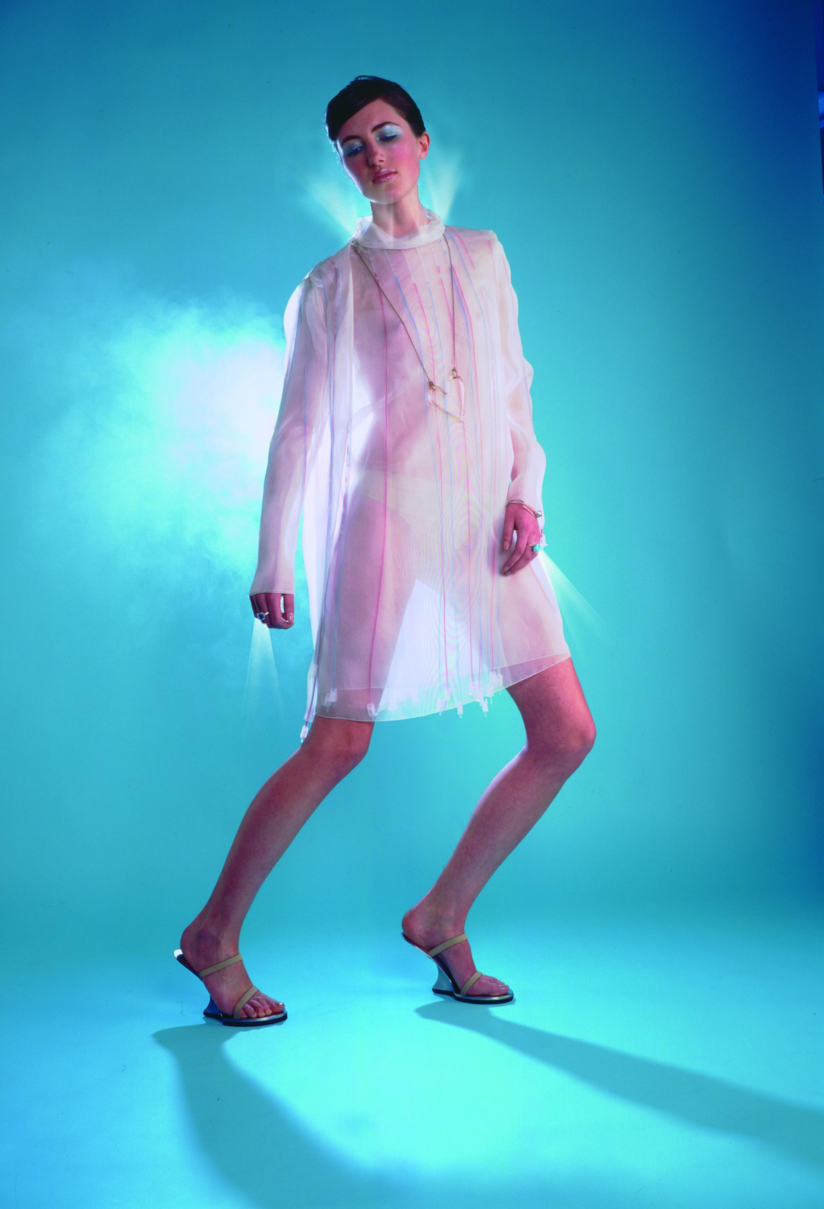 | Description: | SmartSecondSkin’ is an artefact dress that was designed in collaboration with Adeline Andre haute couture (Paris) to illustrate a responsive fabric inspired by neurobiological delivery mechanisms found under skin. This involved the recent development of the miniaturisation of technology in olfaction science and multi-sensory fabrics, with a purpose to improving ‘well-being’. As a designer working in the field of wearable technology, I developed a creative garment prototype which was an interface between the body and medical micro-tubing. My resultant garment was developed as a ‘responsive fabric’, to test and prepare the basis for a future interactive system, which fused MEMS (micro-electro-mechanical-systems) with textile elements, to create a scent delivery system that adds function to fashion design. I researched the project in the healthcare sector (geriatric care and people living with HIV & AIDS) and the idea was originally inspired by my own bipolar affective disorder diagnosis in 1993. The project was funded by an AHRB Small Award in the Creative & Performing (2002). My dress was presented as an interactive, multi-sensory display during the ‘Touch Me’ exhibition at the Victoria & Albert Museum (June-August 2005). |